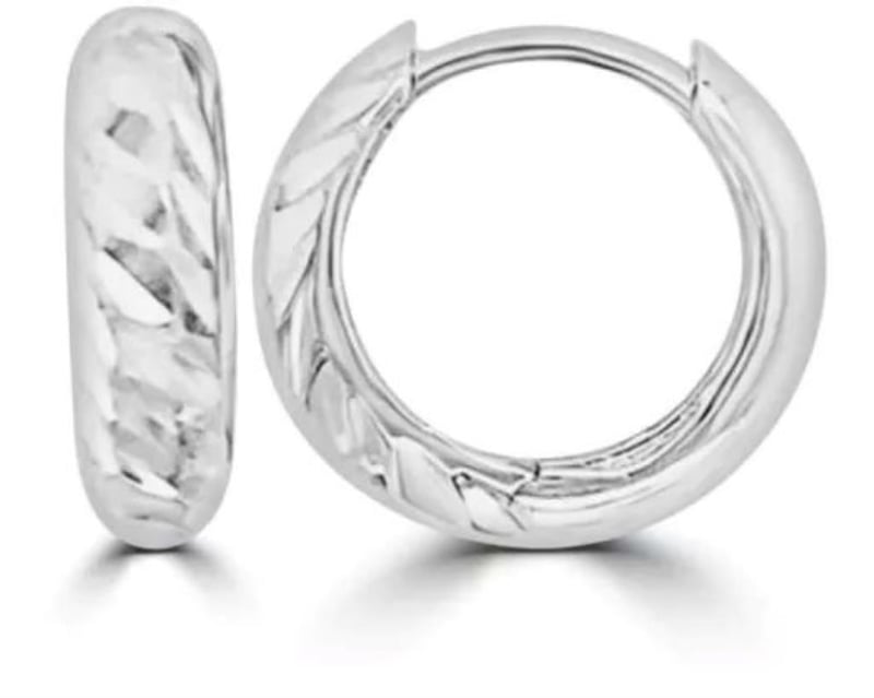9K White Gold Textured Hollow Creole Earrings 9Mm