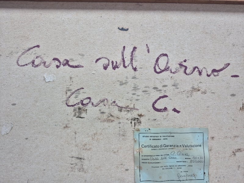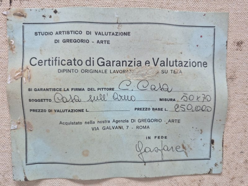 Certificate Attached On The Back On Canvas In Italian