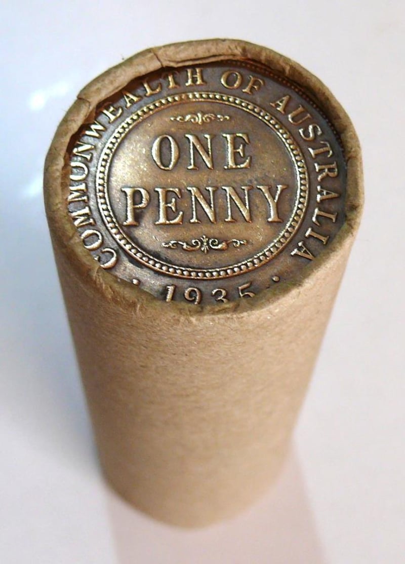 ROLL OF 1935 KGV AUSTRALIAN PENNY (50X CIRCULATED COINS IN A ROLL).