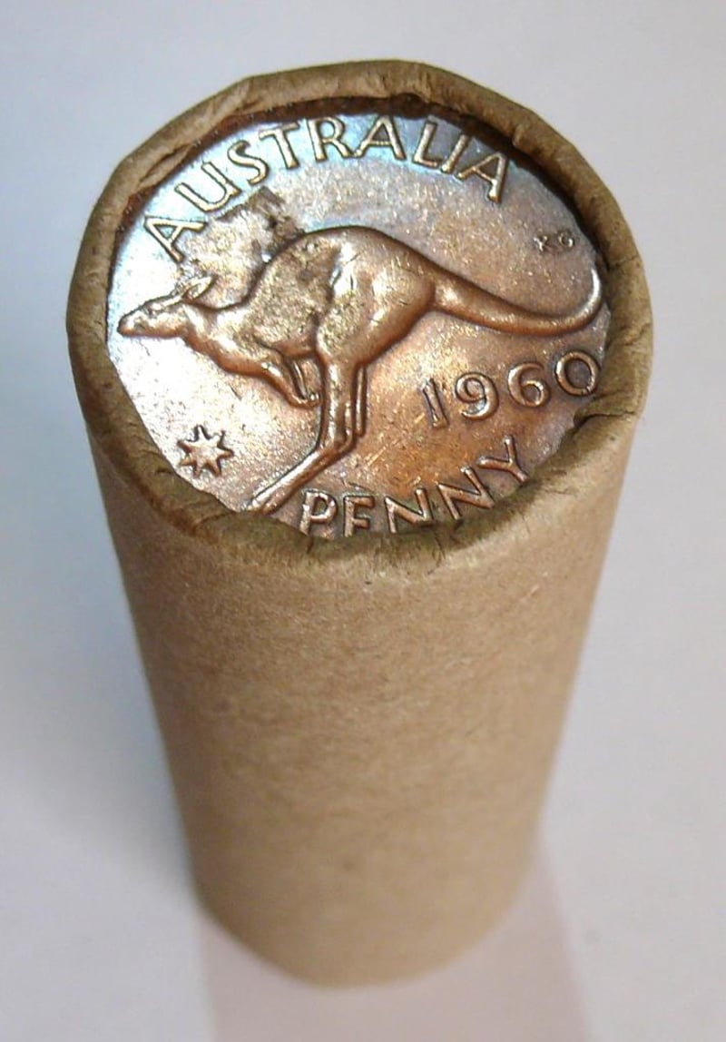 ROLL OF 1960 QEII AUSTRALIAN PENNY (50X CIRCULATED COINS IN A ROLL). 488437+4