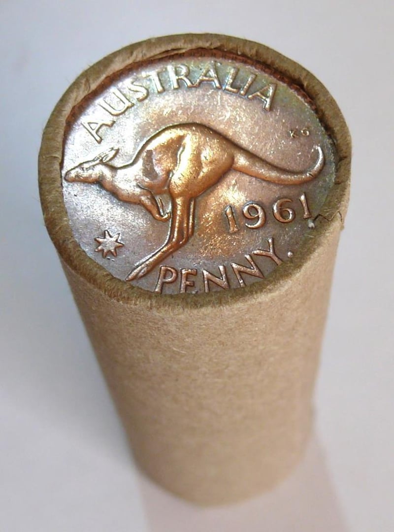 ROLL OF 1961 QEII AUSTRALIAN PENNY (50X CIRCULATED COINS IN A ROLL).