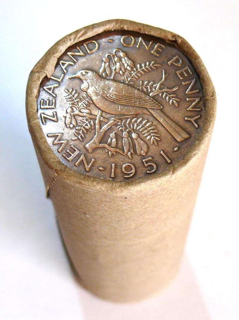 ROLL OF 1951 KGVI, NEW ZEALAND PENNY (50X CIRCULATED COINS IN A ROLL).