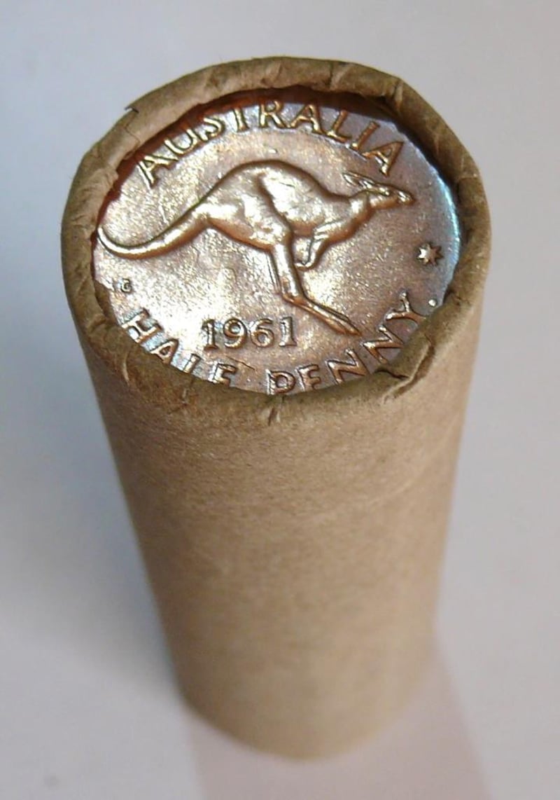 ROLL OF 1961 QEII, AUSTRALIAN HALF PENNY (50X CIRCULATED COINS IN A ROLL). 488437+11