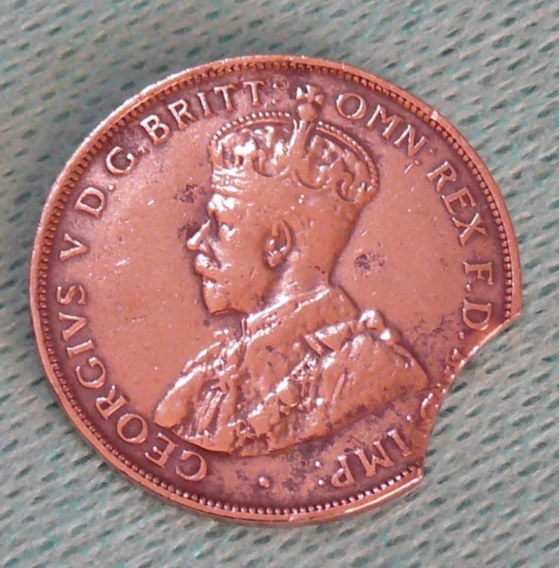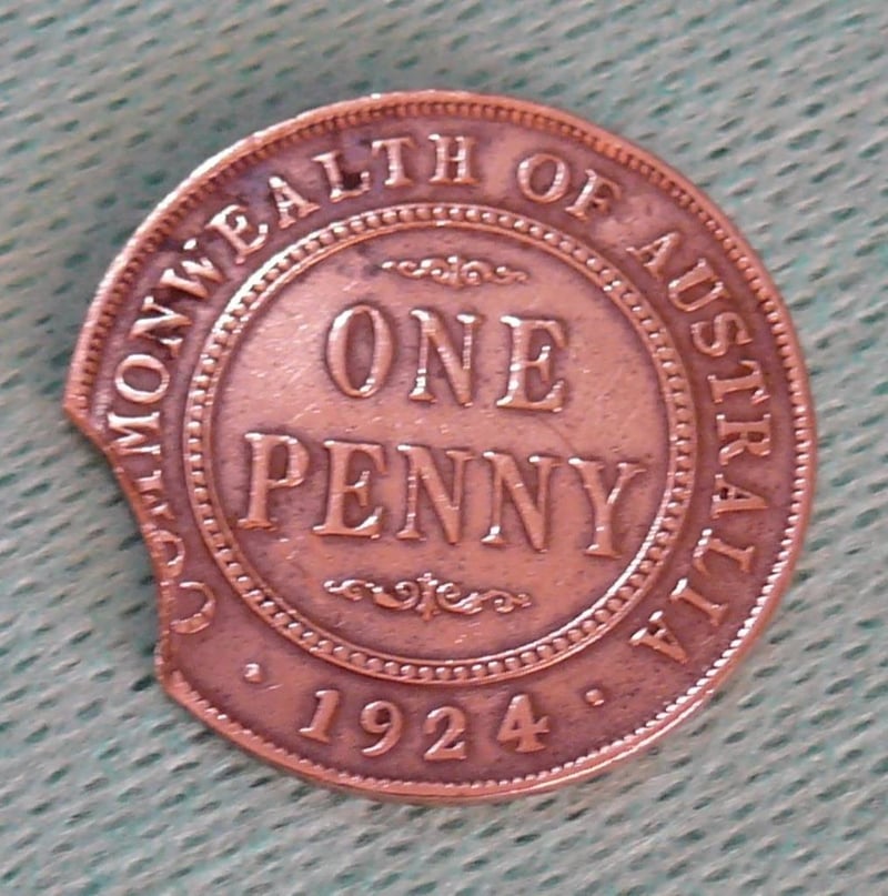 ERROR 1924 KGV, CLIPPED AUSTRALIAN PENNY IN PROTECTIVE 2X2 488437+18