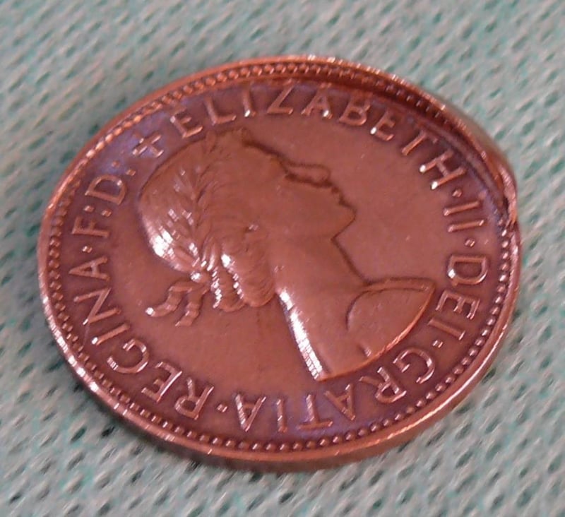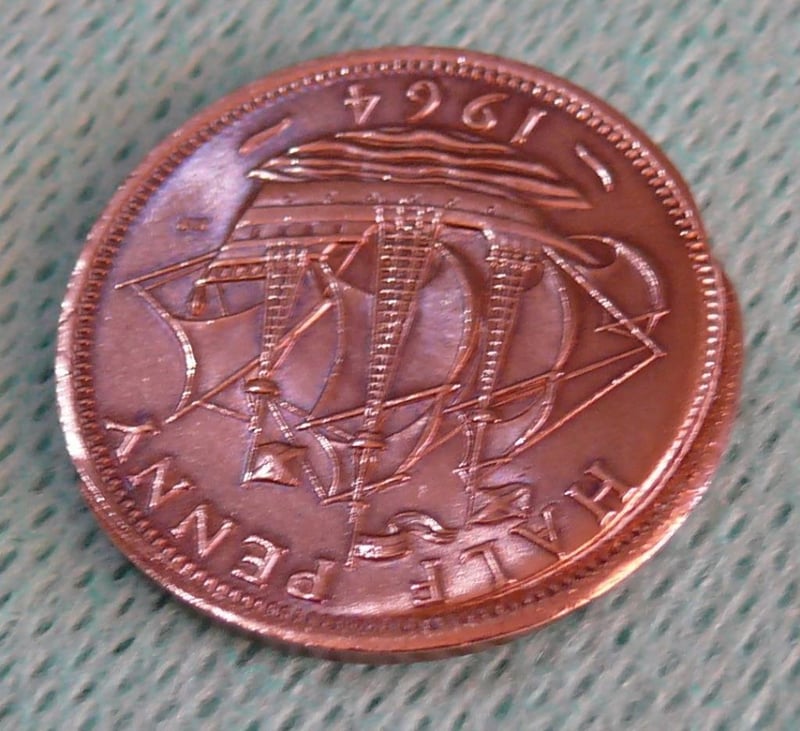 ERROR 1964 QEII, ENGLISH MIS STRICK HALF PENNY IN PROTECTIVE 2X2 488437+20