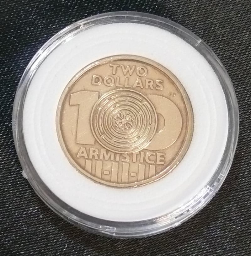ERROR 2018, 100 YEARS OF ARMISTIC $2 COLOUR COIN WITH MISSING PAINT (NO COLOUR).