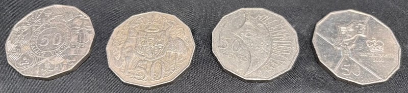 FOUR AUSTRALIAN SILVER FIFTY CENT COINSYears Include 1969, 2000, 2003Coins Include Commemorative 2000 Royal Visit, Commemorative 2003 Australia'S Volunteers, 2000 Millennium Year585054+2