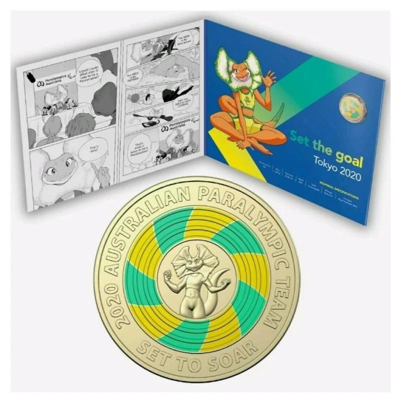 2020 $2 COLOURED UNCIRCULATED COIN: "PARALYMPICS AUSTRALIA." 294139+45