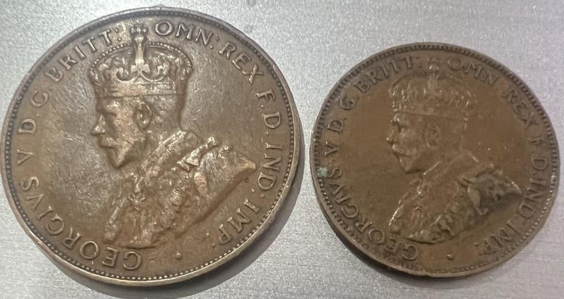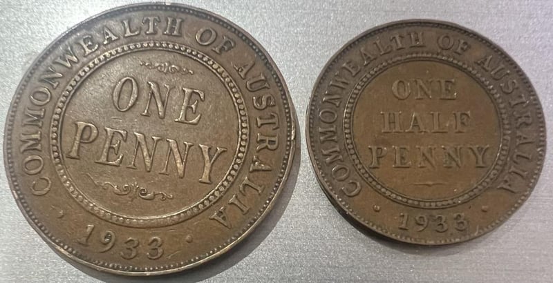 1933 AUSTRALIA KGV PRE DECIMAL ONE PENNY & HALF PENNY 294139+7