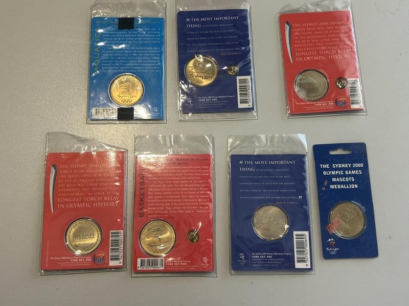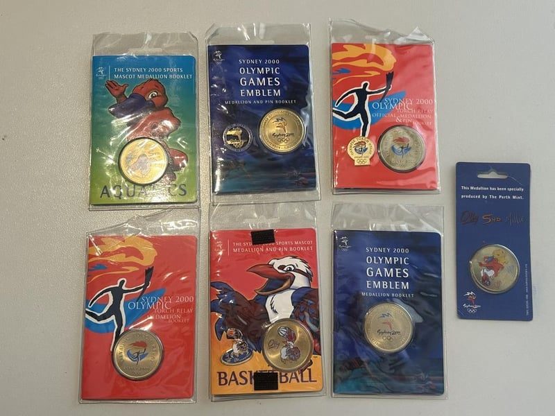 7 X 2000 SYDNEY OLYMPICS MASCOT MEDALLIONS IN CARDS 233488+66