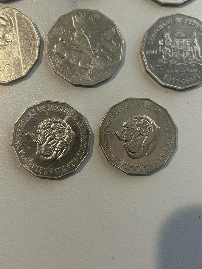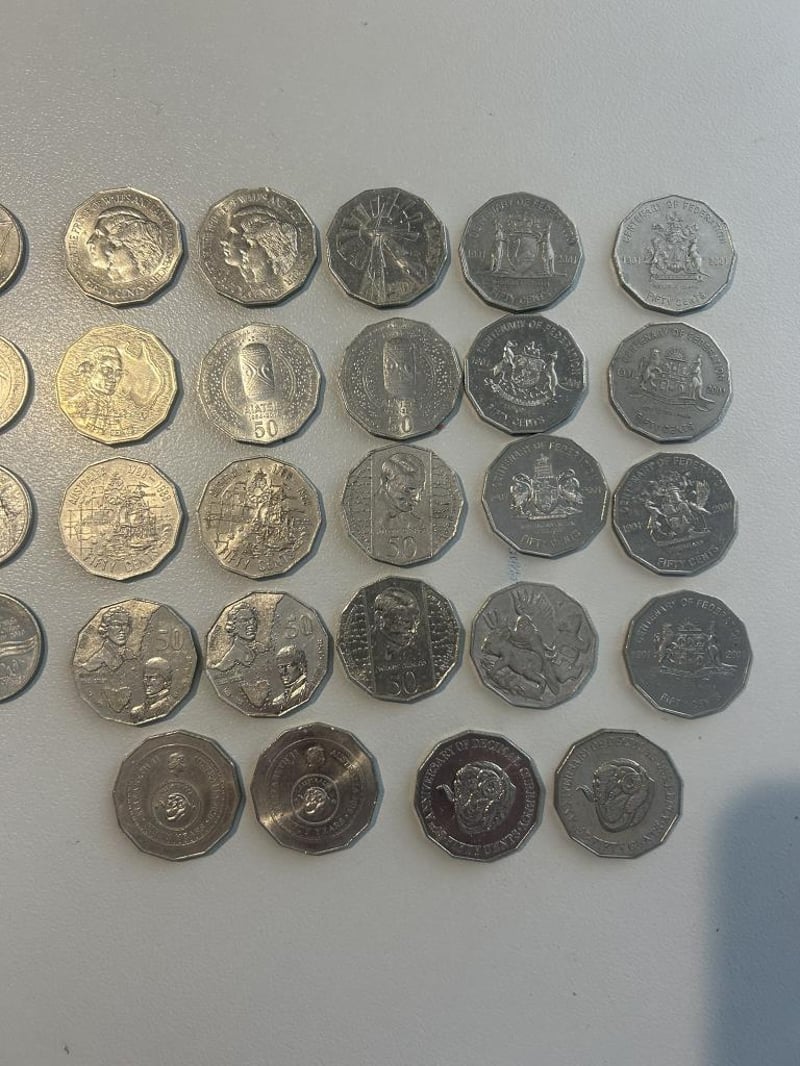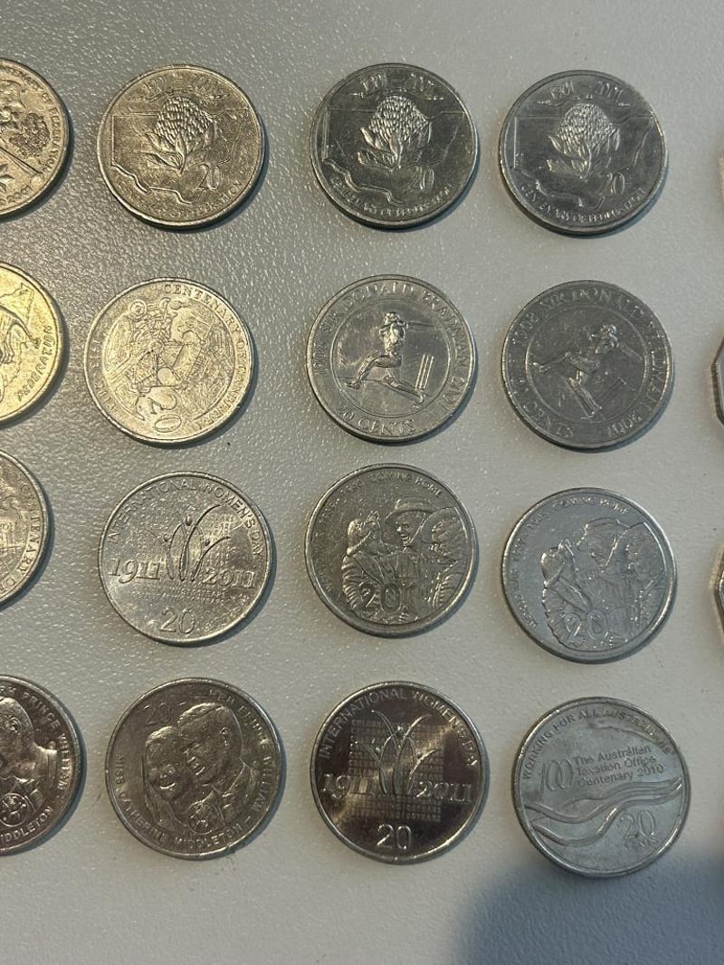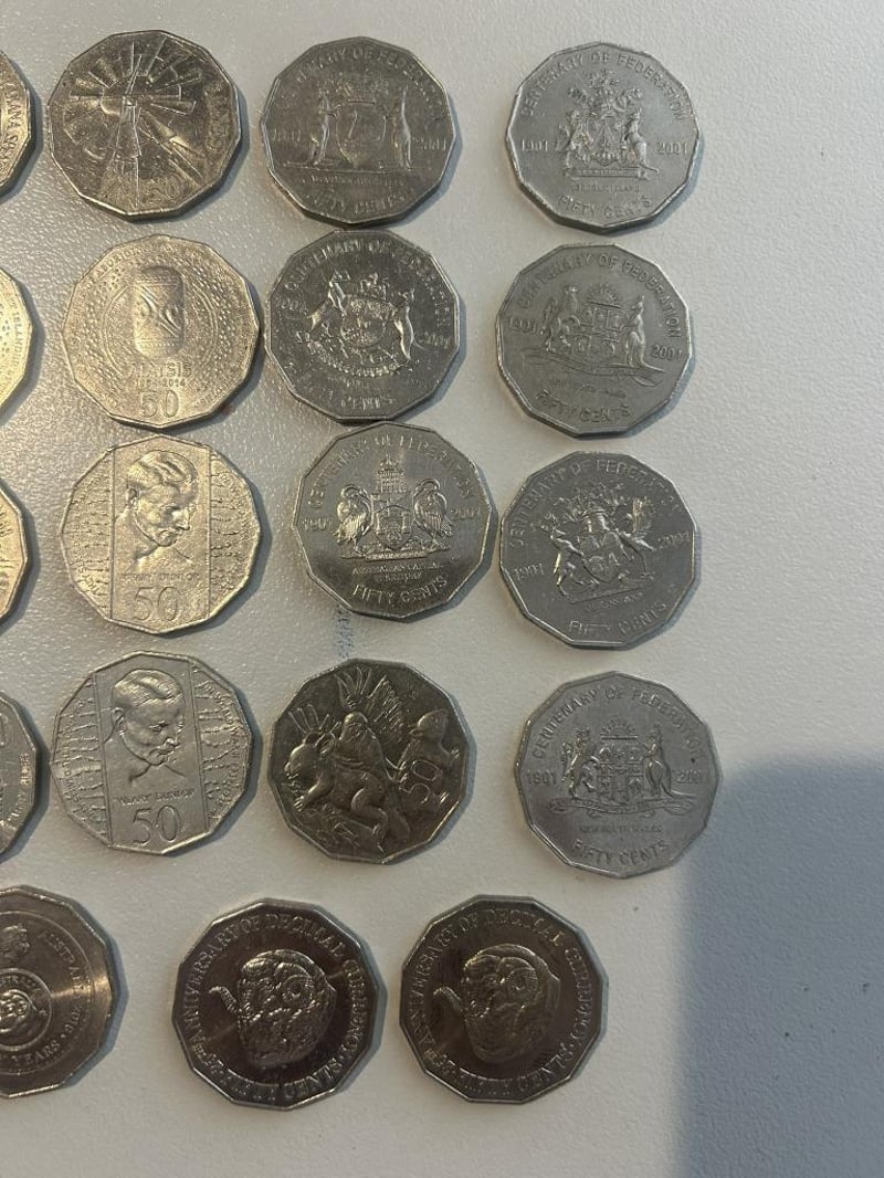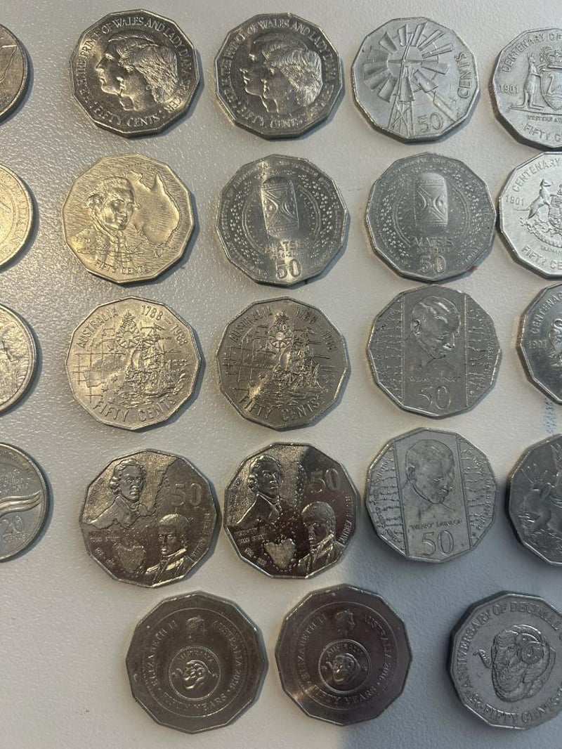 24 X FIFTY CENT PIECES, 20 X TWENTY CENT PIECES 2001 State Coins, 1991 Ram'S Head, 2016 Changeover, Bradman Coin, AiatsisCondition: Circulated 233488+74