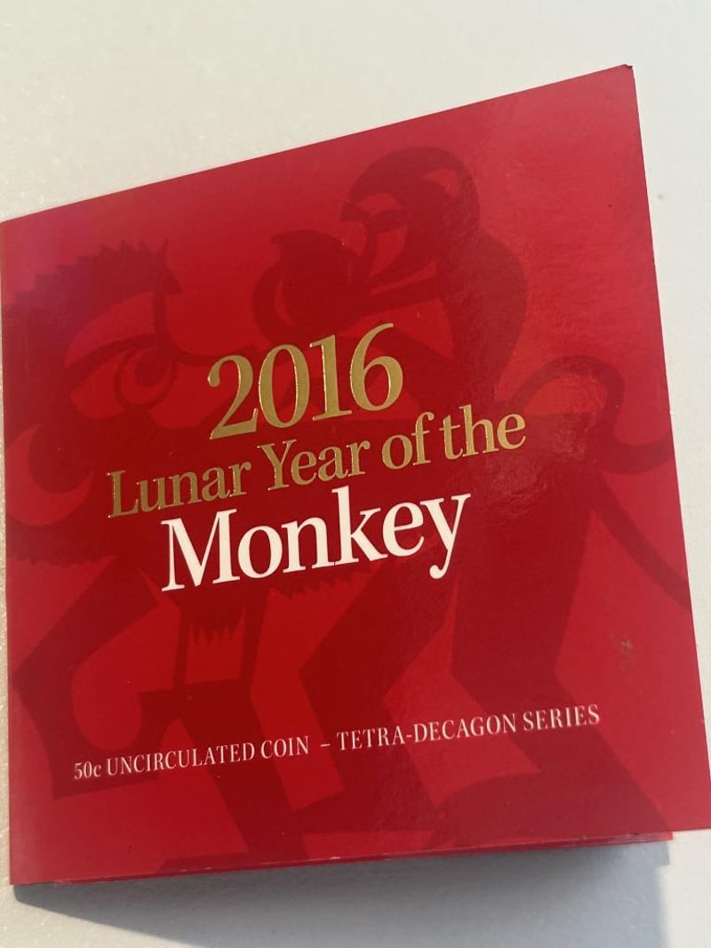 2016 FIFTY CENT YEAR OF THE MONKEY Coin In Card Condition: Unc233488+103