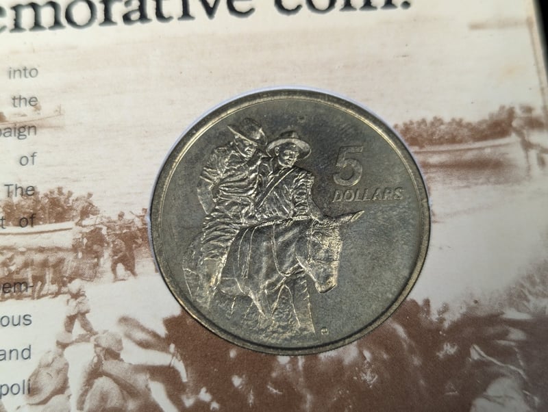 1990 ANZAC 75TH ANNIVERSARY $5 COMMEMORATIVE COIN IN CARD