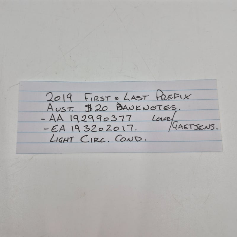 2019 AUSTRALIAN $20 NOTES FIRST AND LAST PREFIX