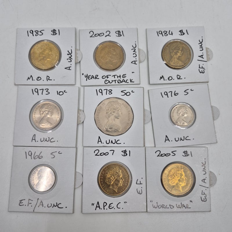 ASSORTED AUSTRALIAN COINS INCLUDING 1966 5C, 1973 10C, 1984 $1 AND MORE