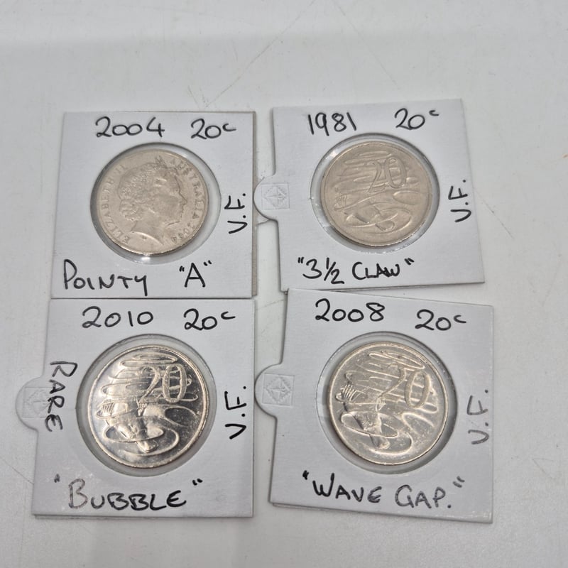ASSORTED AUSTRALIAN 20C COINS W/MISPRINTS
