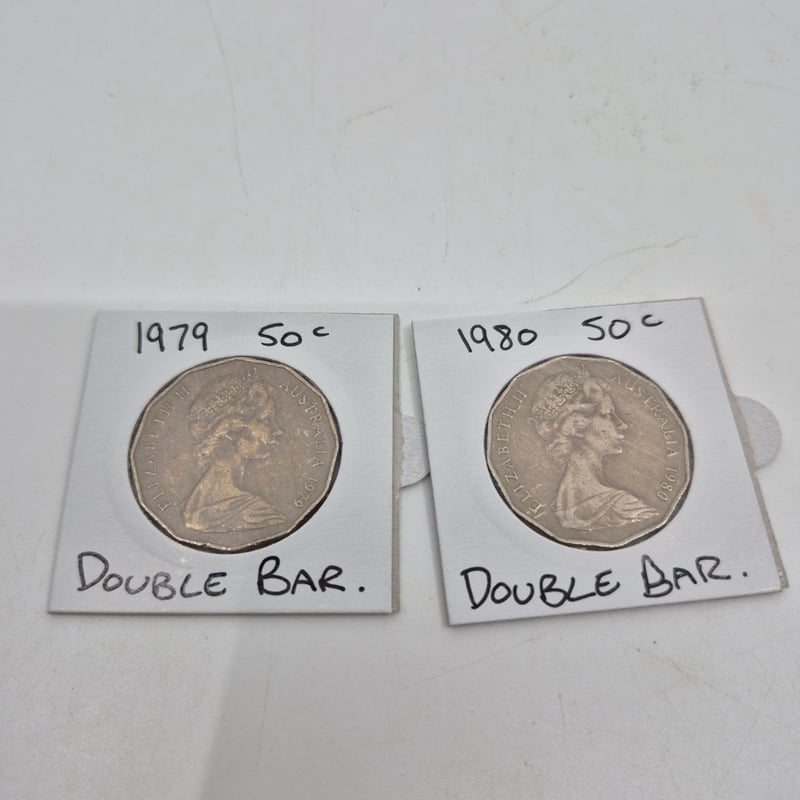 1979 & 1980 50C COINS 'DOUBLE BAR'Condition - MixedVAULT587716+19