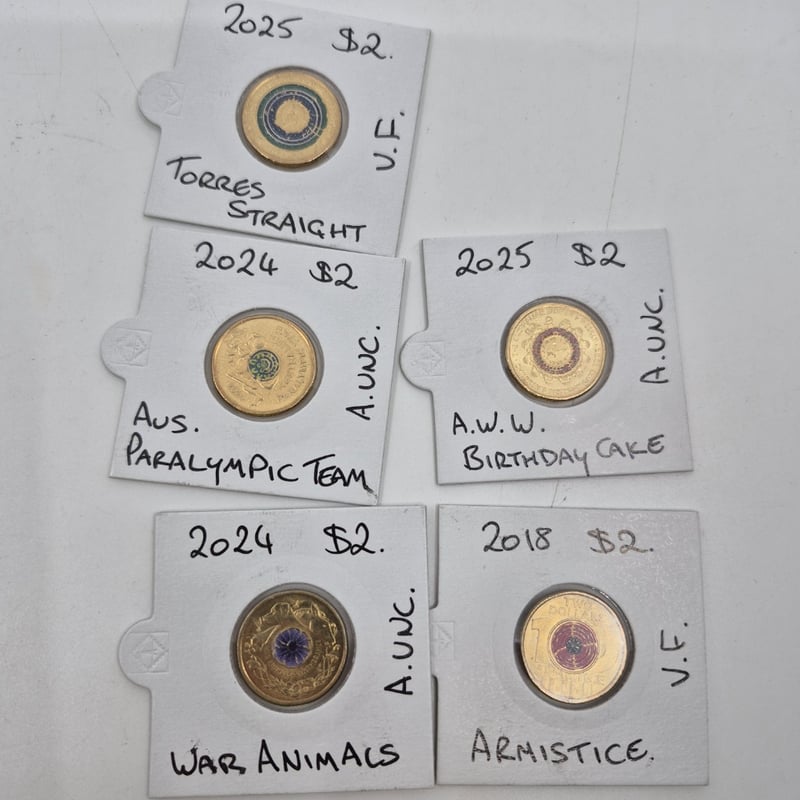 ASSORTED AUSTRALIAN $2 COLOURED COINS