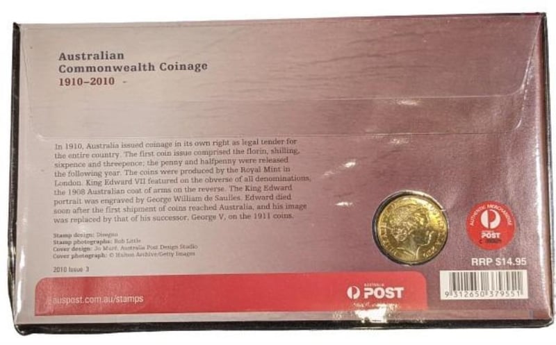 2010 AUSTRALIAN UNC $1 PNC FIRST DAY COVER - COMMONWEALTH COINAGE 1910 - 2010 540000+997