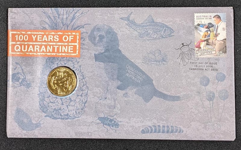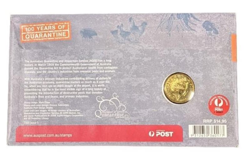 100 YEARS OF QUARANTINE COIN AND STAMP COVER, 2008 $1
