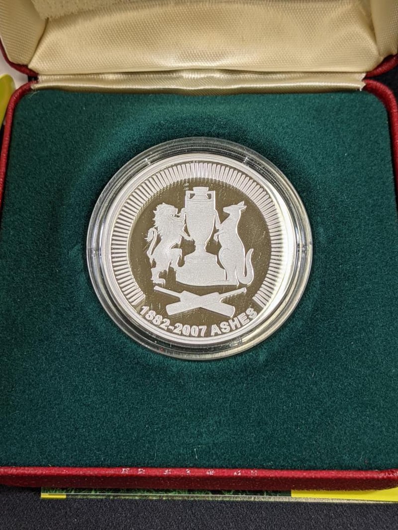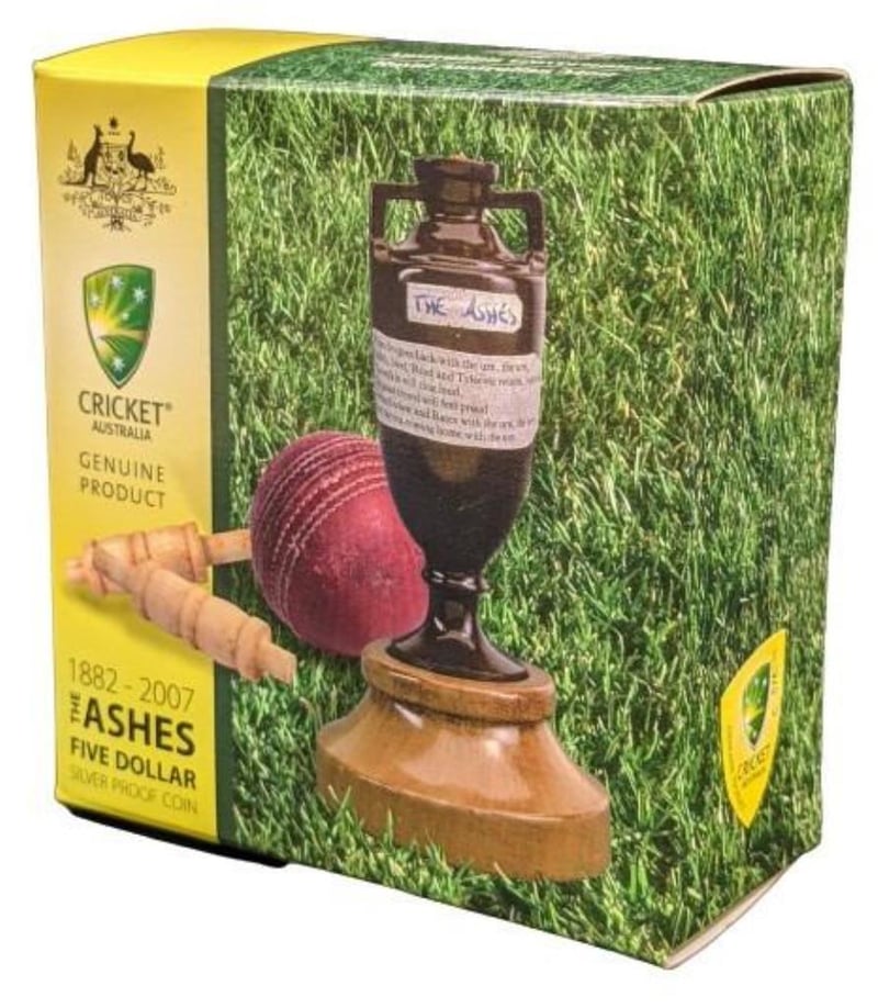 CRICKET AUSTRALIA, 1882 - 2007 THE ASHES FIVE DOLLAR SILVER PROOF COIN, RAM 540000+1000
