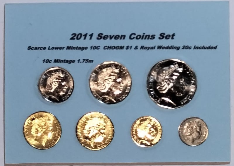 2011 SEVEN COIN SET SCARCE LOWER MINTAGE 10C & CHOGM $1; ROYAL WEDDING 20C INCLUDED Condition: UNCEx Mint Roll/Bag488432+30