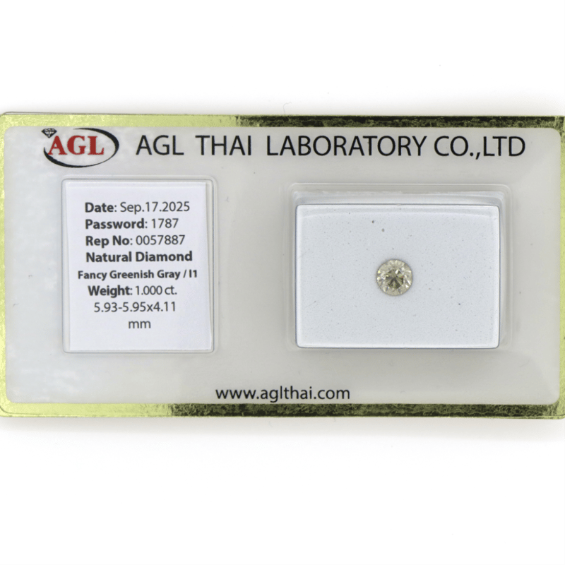 Round Brilliant Cut, Fancy Greenish-Grey Colour, I1 Clarity, Loose, Unset. Stone Comes Sealed With Agl Report: 0057887.