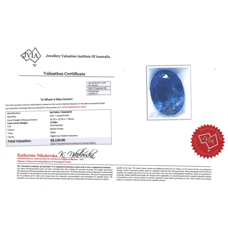 Oval Faceted Cut, Deep Bluish-Purple, Slight Eye Visible Inclusions, Loose, Unset.
