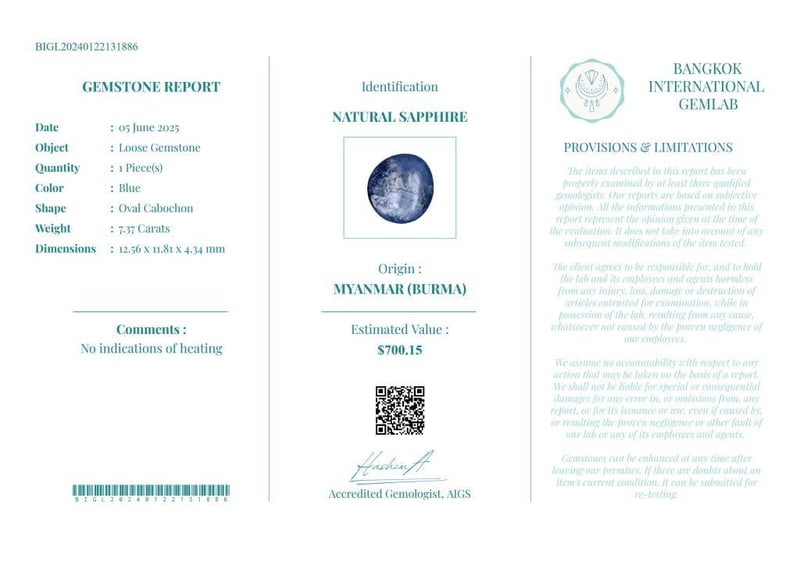 • Verify Report Online At Www.Bangkokinternationalgemlab.Co