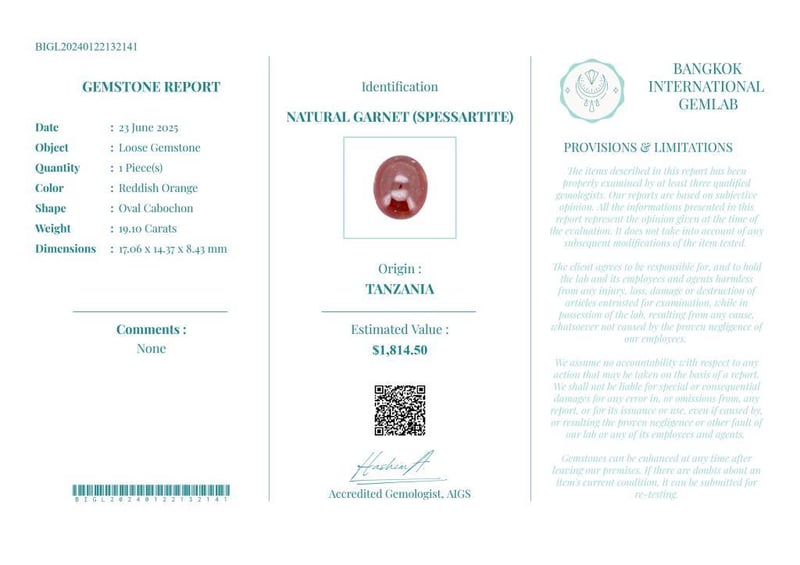 • Verify Report Online At Www.Bangkokinternationalgemlab.Co