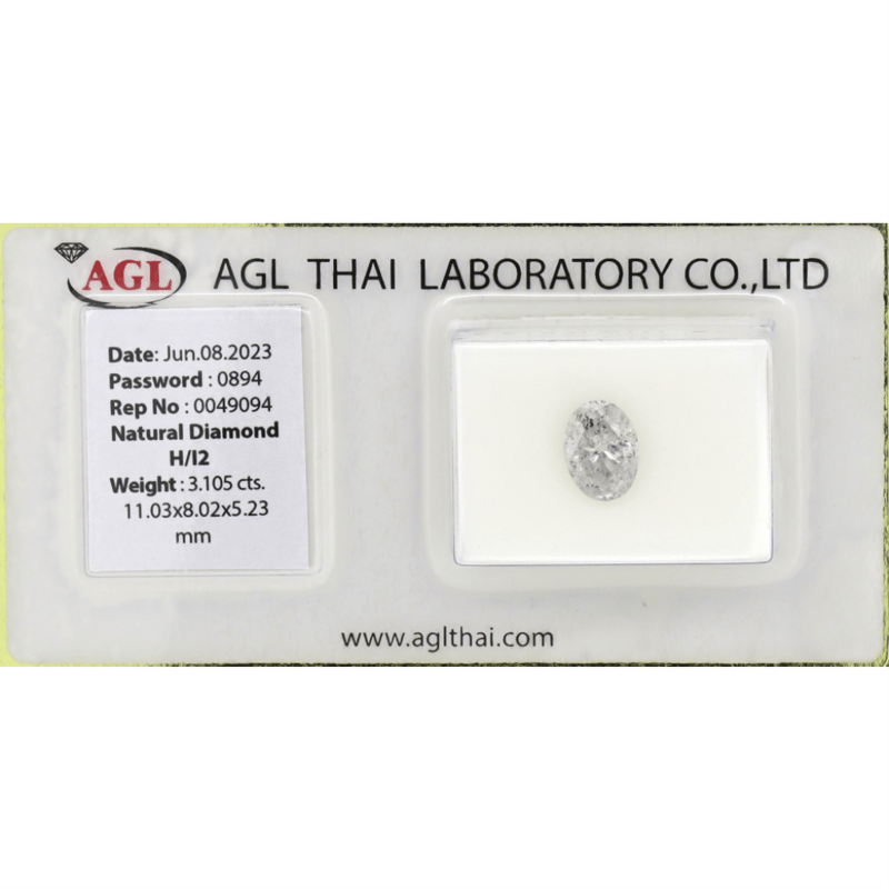 3.105CT CERTIFIED, NATURAL DIAMOND Oval Brilliant Cut, H Colour, P2 Clarity, Loose, Unset. Stone Comes Sealed With Agl Report: 0049094. Valuations Provided by an Independent Third-Party Professional Not Directly Associated With Lloyds Auctions at AUD $$41,800.00This valuation has been conducted by an independent third-party professional. The valuation amount is an assessment by the issuing valuer and does not reflect the auction value of the item. Any inquiries regarding the valuation should be directed to the issuing valuer (refer to contact details on the certificate), as Lloyds Auctions has no affiliation or influence over the valuation, the valuer, or the stated amount. Condition: Good - Refer Images 0645906+2201
