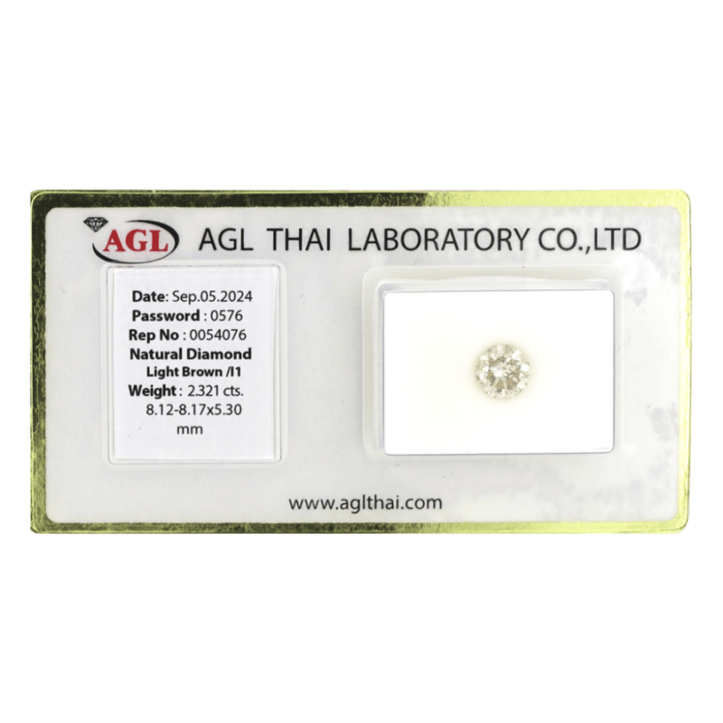 Round Brilliant Cut, Light Brown, I1 Clarity, Loose, Unset. Stone Comes Sealed With Agl Report: 0054076.