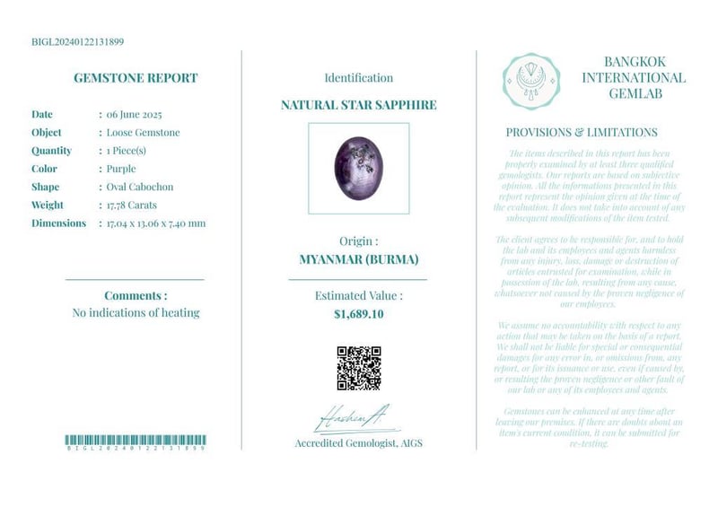 • Verify Report Online At Www.Bangkokinternationalgemlab.Co