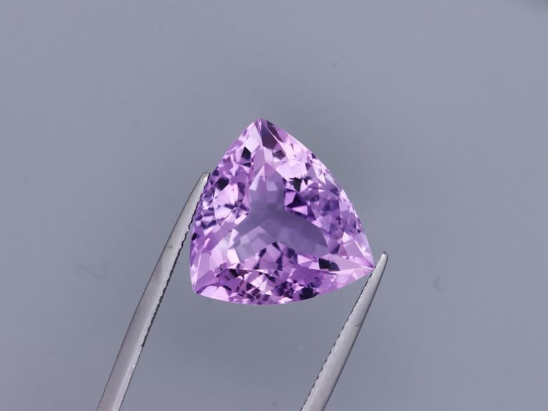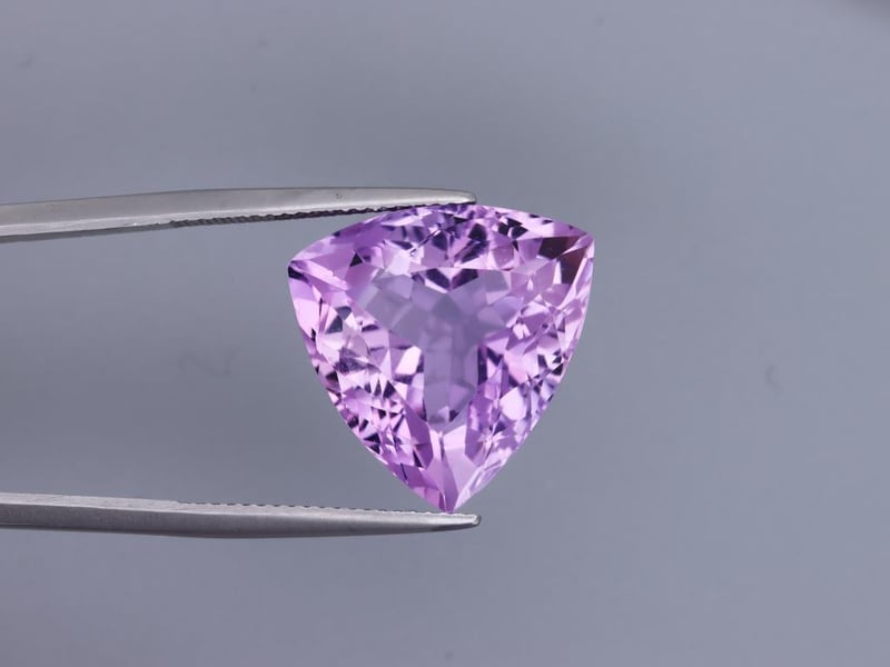17.11 CARATS CERTIFIED NATURAL AMETHYST Gemstone : Natural AmethystCertificate Number : Bigl20240122132034Weight : 17.11 CaratsColor : PurpleMeasurement : 17.44 X 17.38 X 11.21 MmShape : Triangle FacetedQuantity : 1 PieceOrigin : BoliviaComments : None• Use The Qr Code On The Packaging To View And Download The Certificate. • Verify Report Online At Www.Bangkokinternationalgemlab.Co 0+22