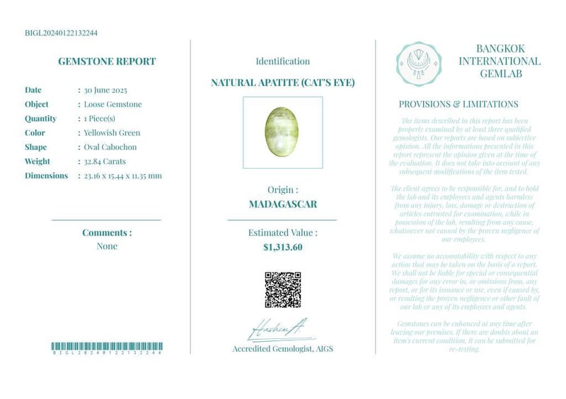 • Verify Report Online At Www.Bangkokinternationalgemlab.Co