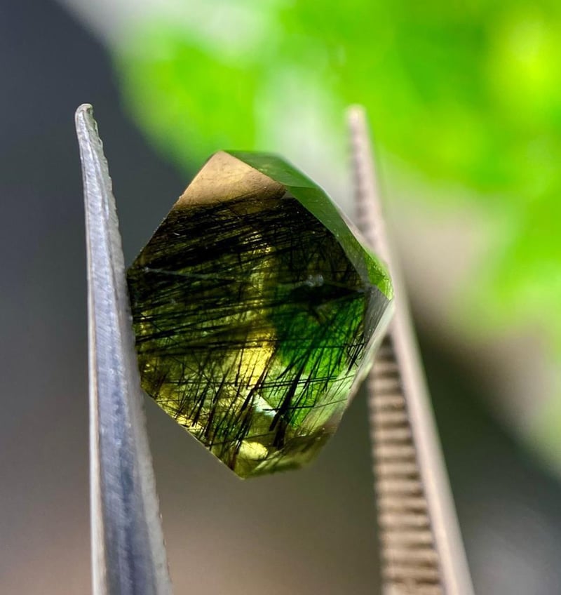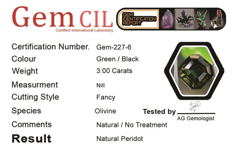 3.00 CARATS NATURAL RARE LOUDGITE PERIDOT 3.00 Carats Natural Rare Loudgite PeridotStone = Natural PeridotWeight = 3.00 CaratsColour = Green / BlackCut = Fancy Inclusion = LoudgiteNote = Gem Cil, Certified, Precise Custom Cut (Not Commercial) 0+6