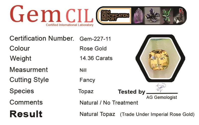 14.36 CARATS NATURAL IMPERIAL ROSE GOLD TOPAZ 14.36 Carats Natural Imperial Rose Gold Topaz Stone = Natural TopazWeight = 14.36 Carats Colour = Rose Gold Cut = Fancy Lustre = Excellent Treatment = Natural, No TreatmentQuality = Vvs (Premium)Note = Precise Custom Cut (Not Commercial)This Natural Topaz Has High Level Of Pleochroism, So Color Intensity Can Vary Upon Different Light Conditions. 0+11