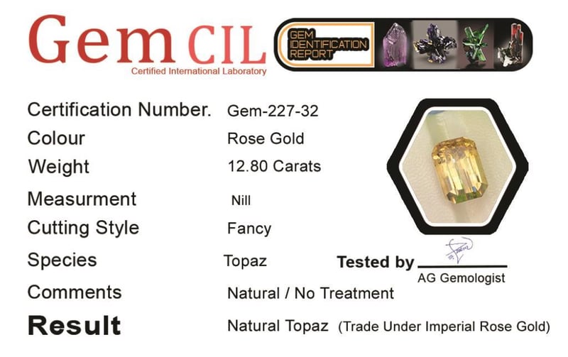 12.80 CARATS NATURAL IMPERIAL ROSE GOLD TOPAZ 12.80 Carats Natural Imperial Rose Gold Topaz Stone = Natural TopazWeight = 12.80 Carats Colour = Rose Gold Cut = Fancy Lustre = Excellent Treatment = Natural, No TreatmentQuality = Vs (Premium)Note = Precise Custom Cut (Not Commercial)This Natural Topaz Has High Level Of Pleochroism, So Color Intensity Can Vary Upon Different Light Conditions. . 0+32