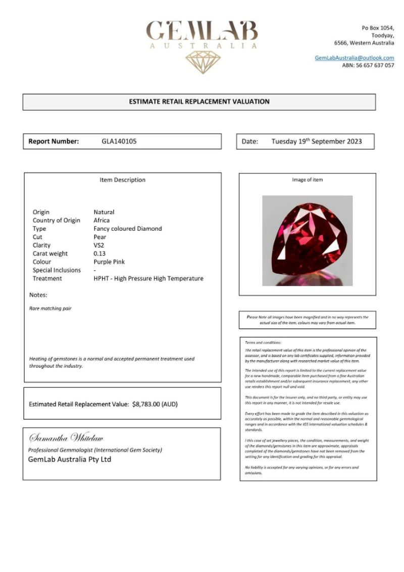 0.13CT NATURAL FANCY DIAMONDCondition: Good - Refer To ImagesInsurance Replacement Valuation Amount: $8,783.00488394+5
