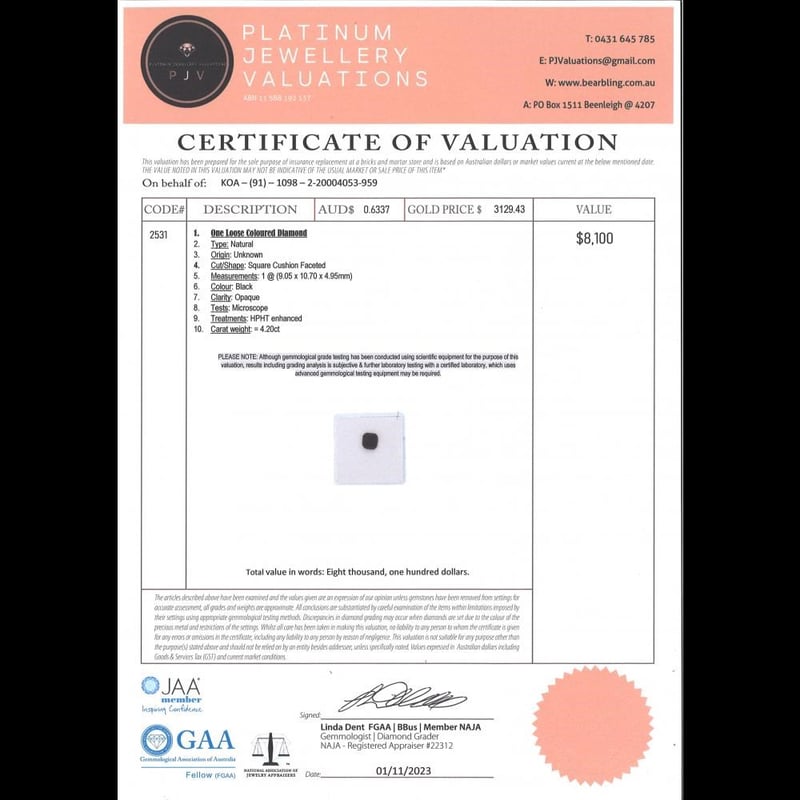 4.20CT NATURAL DIAMONDCondition: Good - Refer To ImagesInsurance Replacement Valuation Amount: $8,100.00488394+4