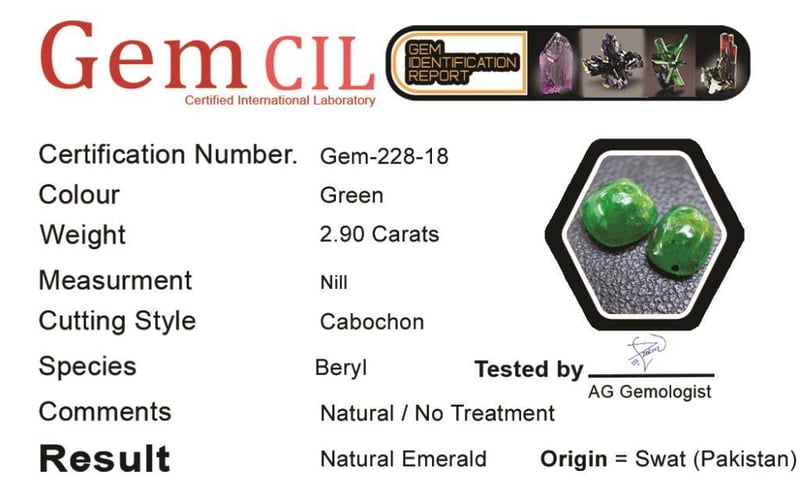 2.90 CARATS NATURAL GEMMY EMERALD 2.90 Carats Natural Gemmy Emerald Stone = Natural EmeraldWeight = 2.90 Carats Colour = Green Cut = CabochonLustre = Excellent Treatment = No Oil (Natural)Origin = Swat (Pakistan) Note = Condition: Good - Refer Images 0488410+18