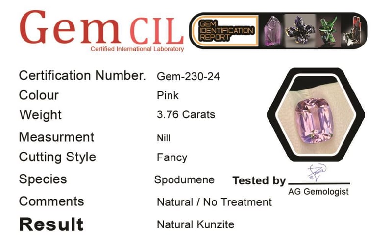 3.76 Carats Natural Top Quality Purplish-Pink Kunzite