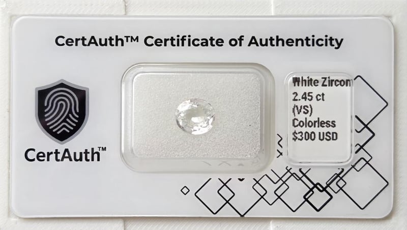 This Auction Features A Brilliant 2.45-Carat White Zircon Displaying A Colorless Hue. The Gemstone Is Fashioned In An Oval Cut And Holds A Vs Clarity Grade. This Is An Earth-Mined Stone With No Treatments Applied. It Is Accompanied By The Certauth Certificate Of Authenticity Ca186296.