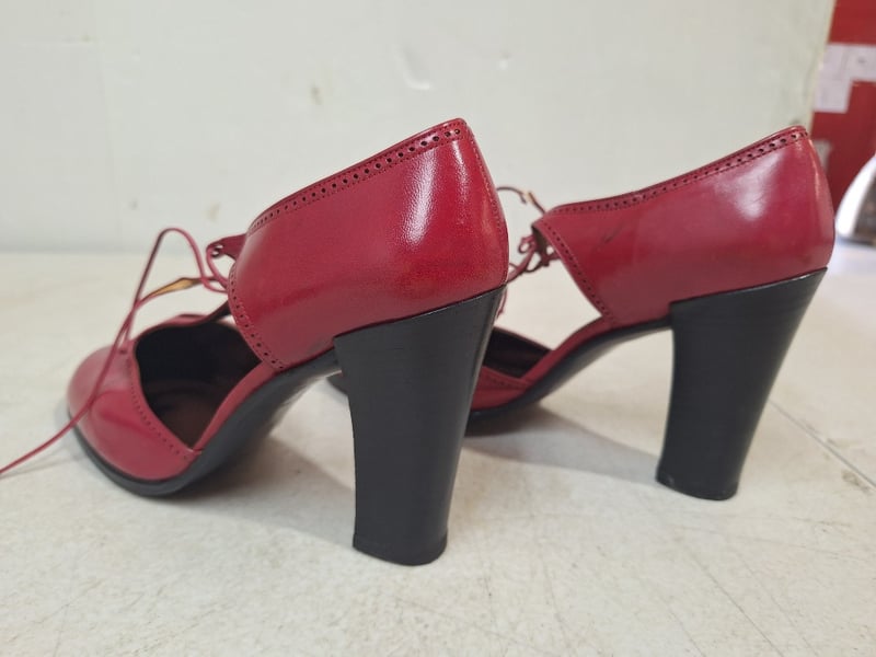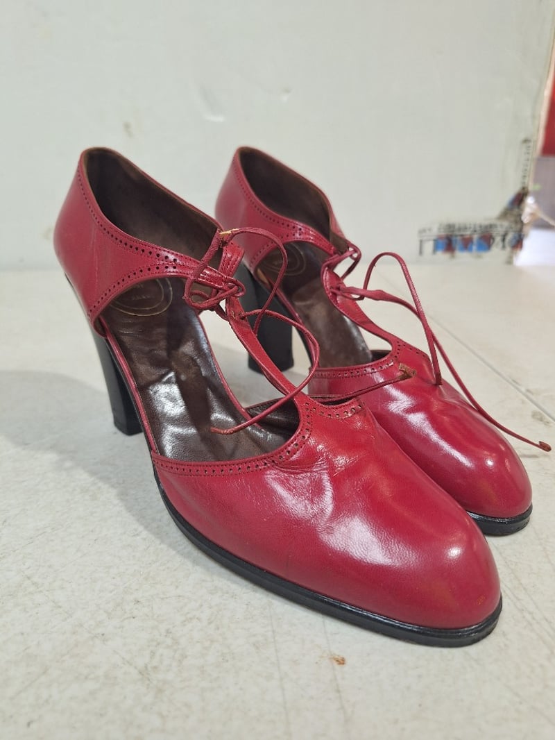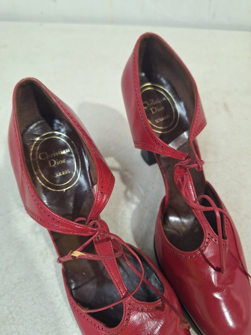 Christian Dior Lace-up Heels, Red Leather Style, Size 7 1/2