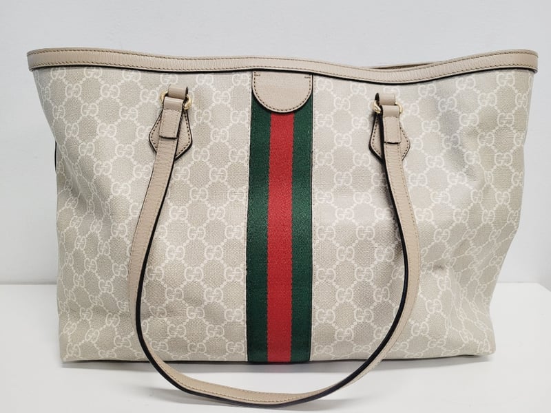 GUCCI OPHIDIA TOTE BAG BEIGE/WHITE