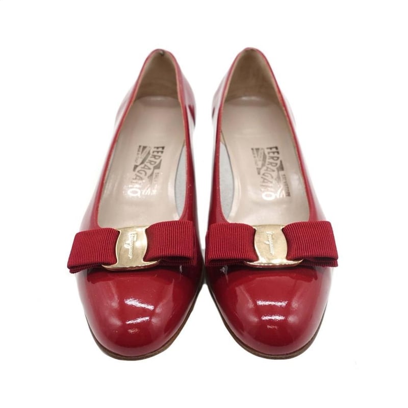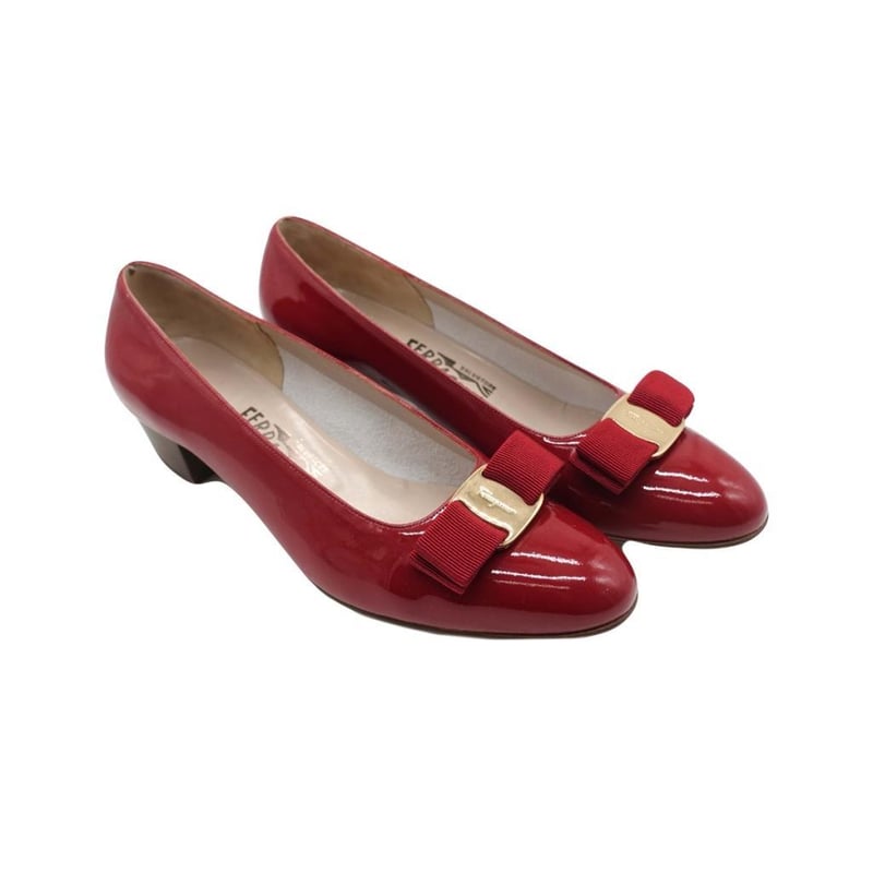 SALVATORE FERRAGAMO PATENT LEATHER VARA BOW PUMPS RED 8C