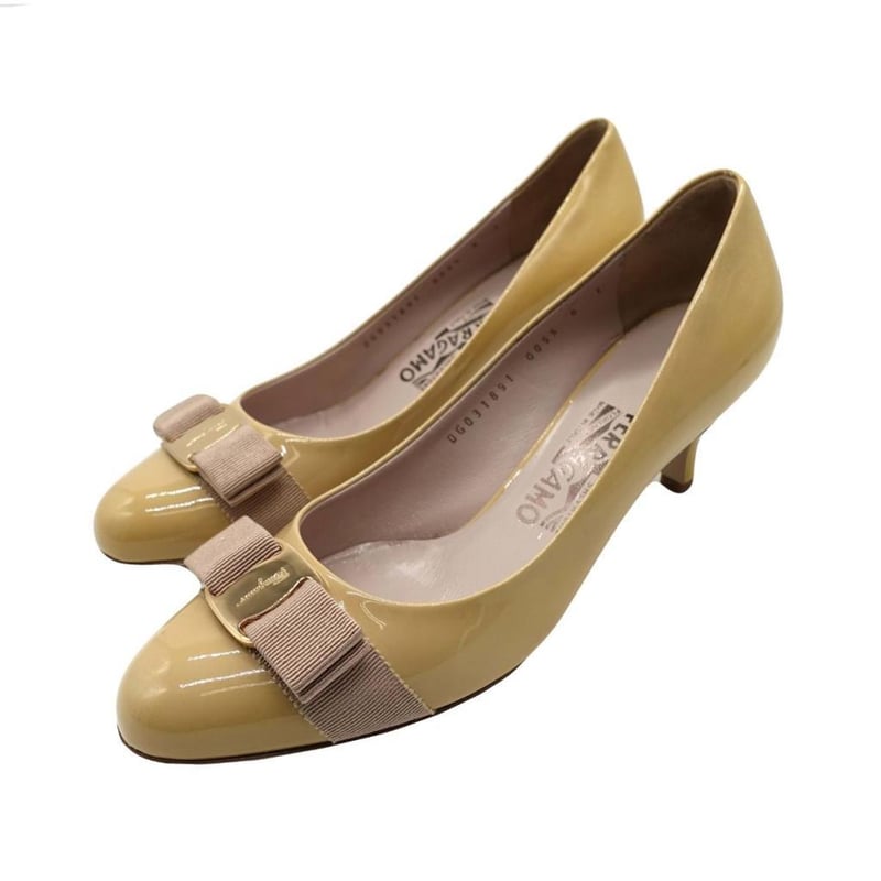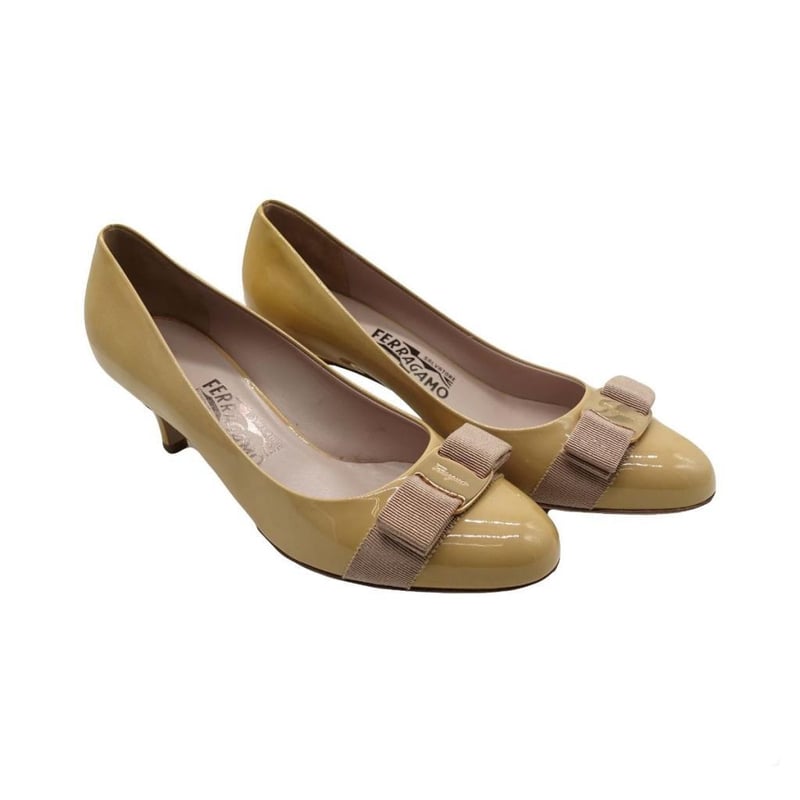 SALVATORE FERRAGAMO PATENT LEATHER VARA BOW BLOCK HEEL PUMPS SIZE 8C