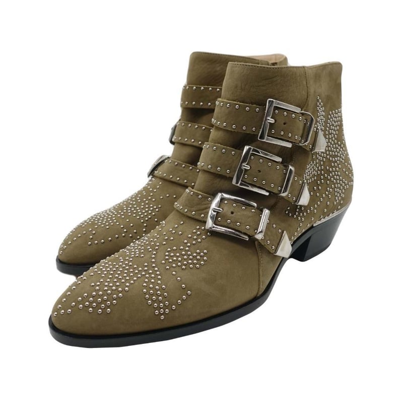 CHLOE STUDDED SUEDE SUSANNA ANKLE BOOTS SIZE 38