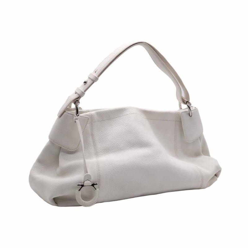 SALVATORE FERRAGAMO CALF LEATHER GANCINI BAG WHITE