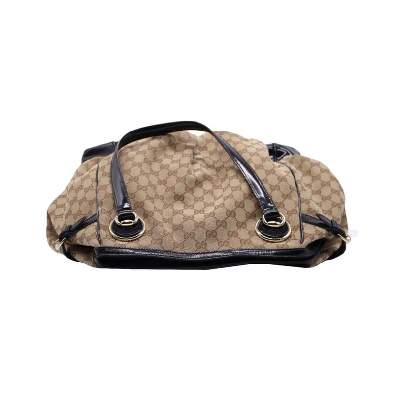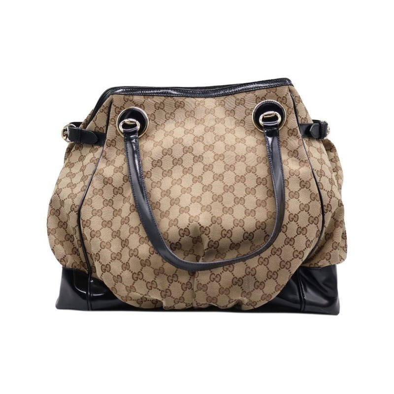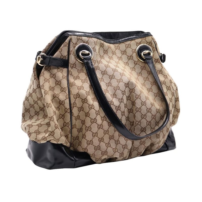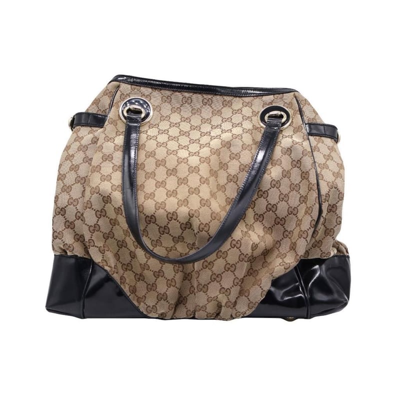 GUCCI GG CANVAS LARGE FULL MOON TOTE Exterior Material: Canvas And Patent Leather Trim With Gold-Tone Hardware, Dual Flat Top Handles, Protective Metal Feet And Snap Button Closure At Top.Interior Material: Textile Lining With A Main Compartment, A Zipped Pocket And Two Patch Pockets.Length: 40CmHeight: 39CmDepth: 15CmHandle Drop: 19CmAdditional Condition Report- Minor Sign Of Wear And Tears On Exterior- Moderate Scuffs And Creases On Exterior Corners- Minor Wear In Interior- Sign Of Wear And Scratches On HardwareComes With- Original DustbagAccompanied By Certificate Of Authenticity Condition: Good - Refer Images 0163034+9
